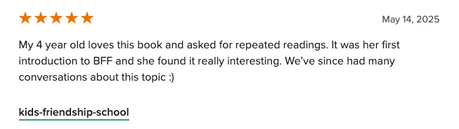 BEST FRIENDS features Maya, who is hesitant to attend school. In a classic playground move, her friend has told her she is not her BFF. The problem is, she doesn't know what a BFF is, but she is troubled by the rejection. Her mother points out that she has more than one friend with whom she can play.